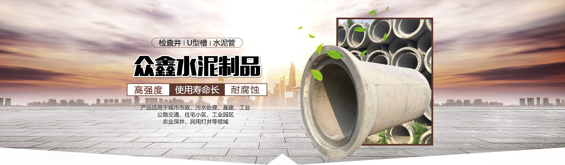 吉林眾鑫水泥制品有限公司,位于吉林省吉林市龍?zhí)秴^江北鄉官地村,交通便利,廠區占地面積2萬余平,公司秉承客戶至上,信譽為首,以人為本,安全為先為經營理念,其主要生產各種規(guī)格的平口和承插口鋼筋混凝土排水水泥管,水泥預制檢查井、u型槽等水泥制品。適用于城市市政、污水處理、基建、公路交通、住宅小區、工業園區、工業、農業深井、民用打井等領域。